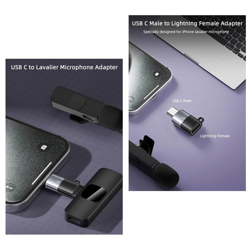 Pomoc´u ovog adaptera možete lako povezati bežični lavalier mikrofon sa vašim iPhone 16/15 serijom, iPad Air/Pro i drugim telefonima i tabletima sa USB C portom.