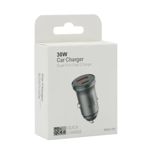 Auto punjac 30W USB-A + Type-C ulaz sa Type-C na Type-C kablom sivi (MS)