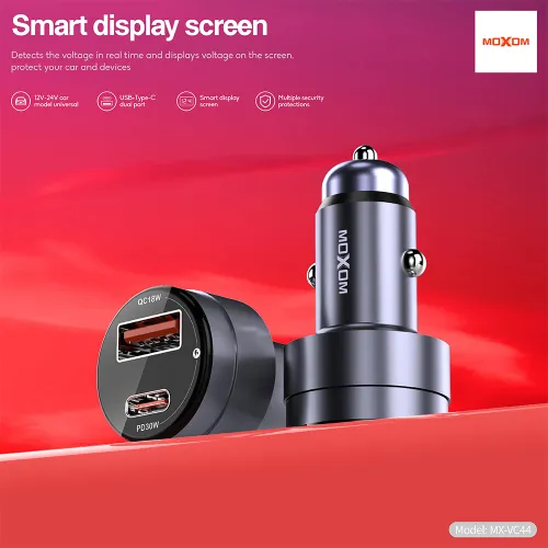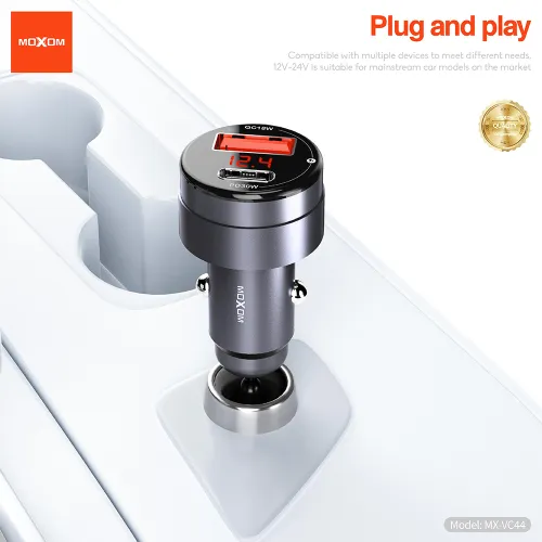 Auto punjac Moxom MX-VC44 USB-A 18W+Type-C PD30W bez kabla crni (MS)