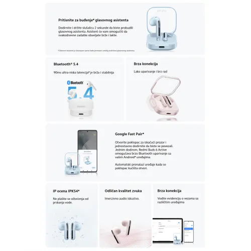 Bluetooth slusalice Xiaomi Redmi Buds 6 Active crne