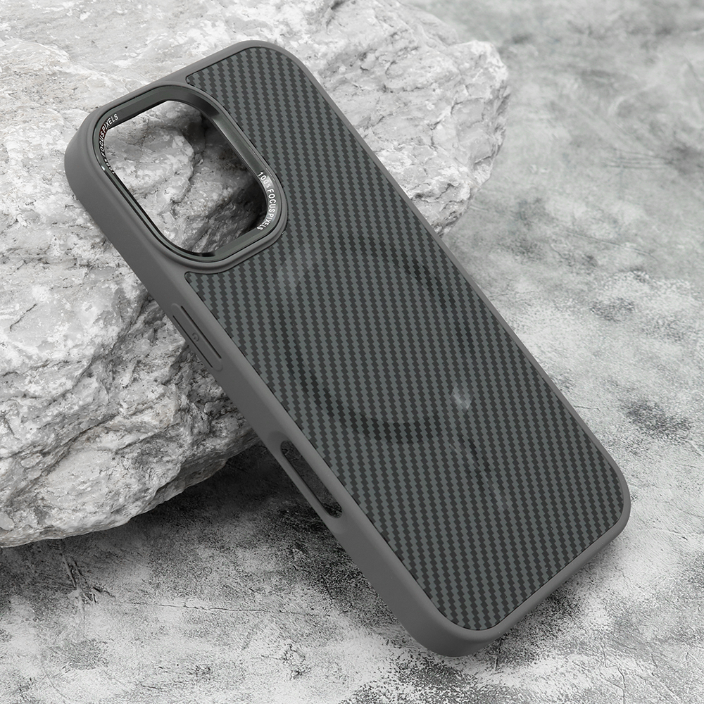Futrola - maska CARBON MagSafe za iPhone 16 (6.1) siva (big camera) (MS)