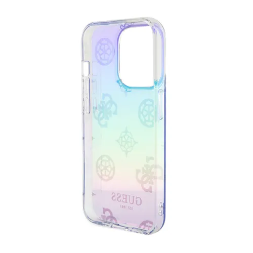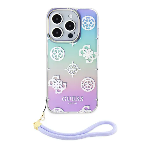 Futrola - maska Guess Hc PC TPU Iridescent Glitter Pattern Peony Cordstrap za iPhone 15 Pro 6.1 ljubicasta (GUHCP15LHPELISU)