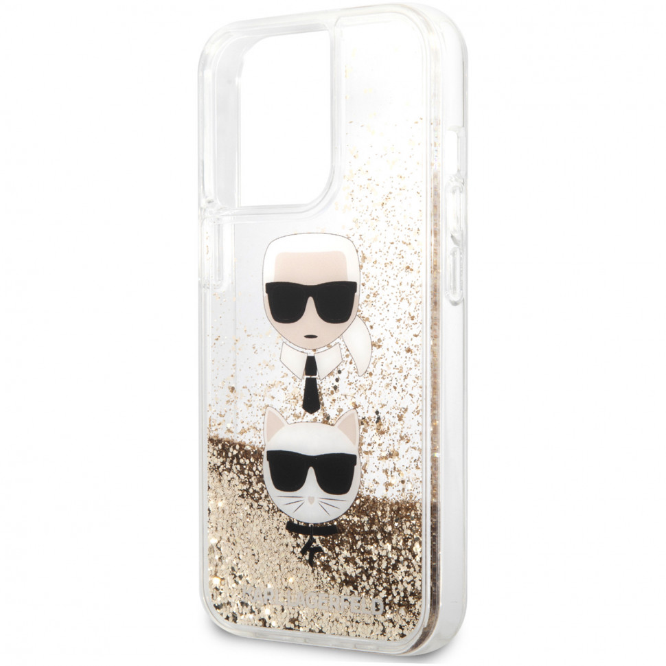 Futrola - maska Karl Lagerfeld Hc Liquid Glitter 2 Heads za iPhone 14 Pro 6.1 zlatna (KLHCP14LKICGLD)