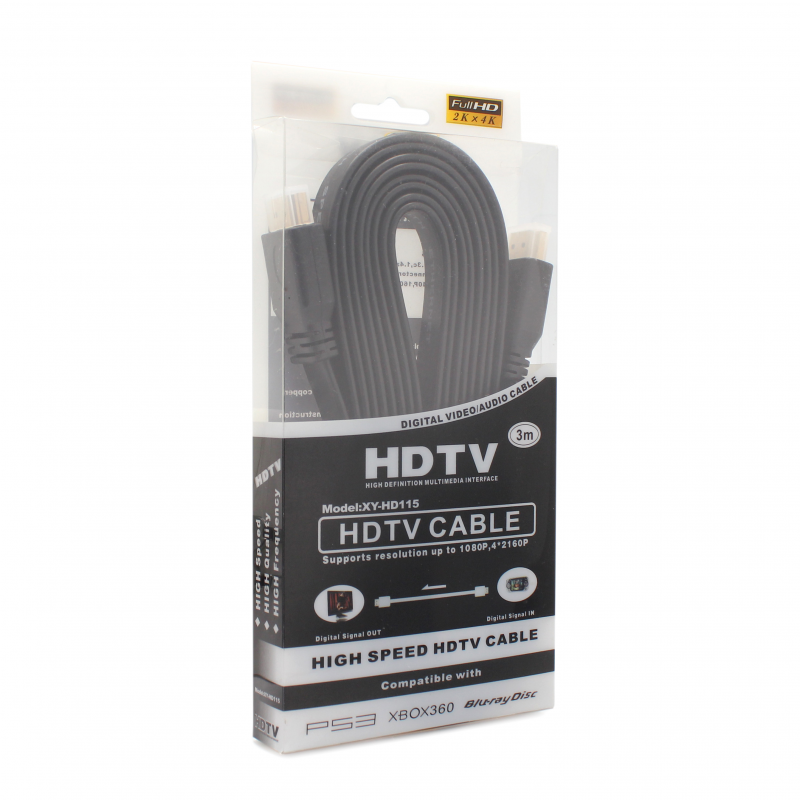 Kabl Flet kabl HDMI na HDMI 3m crni