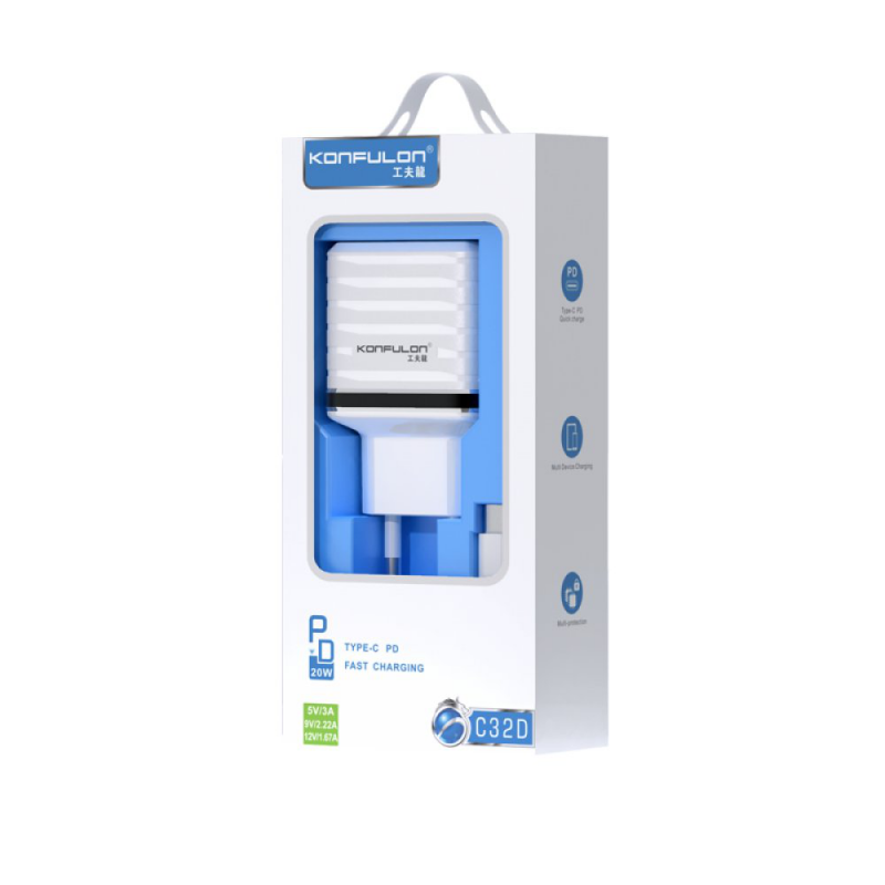 Kucni punjac KONFULON C32D+DC15 20W sa PD kablom