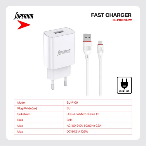 Kucni punjac Superior SU-P100 10.5W 2.1A Micro beli (MS)