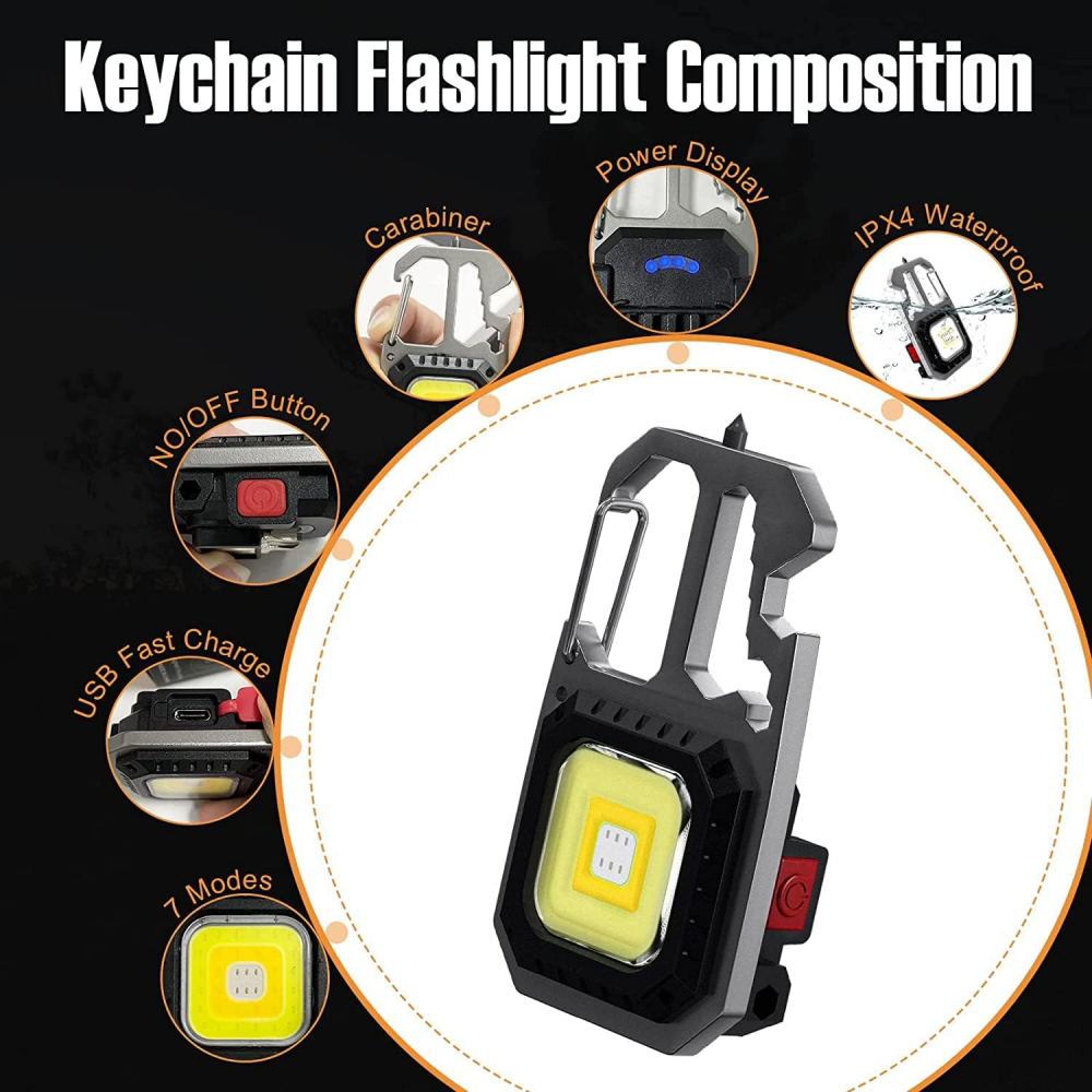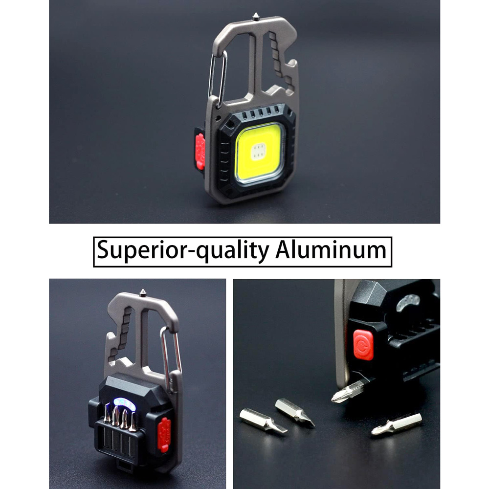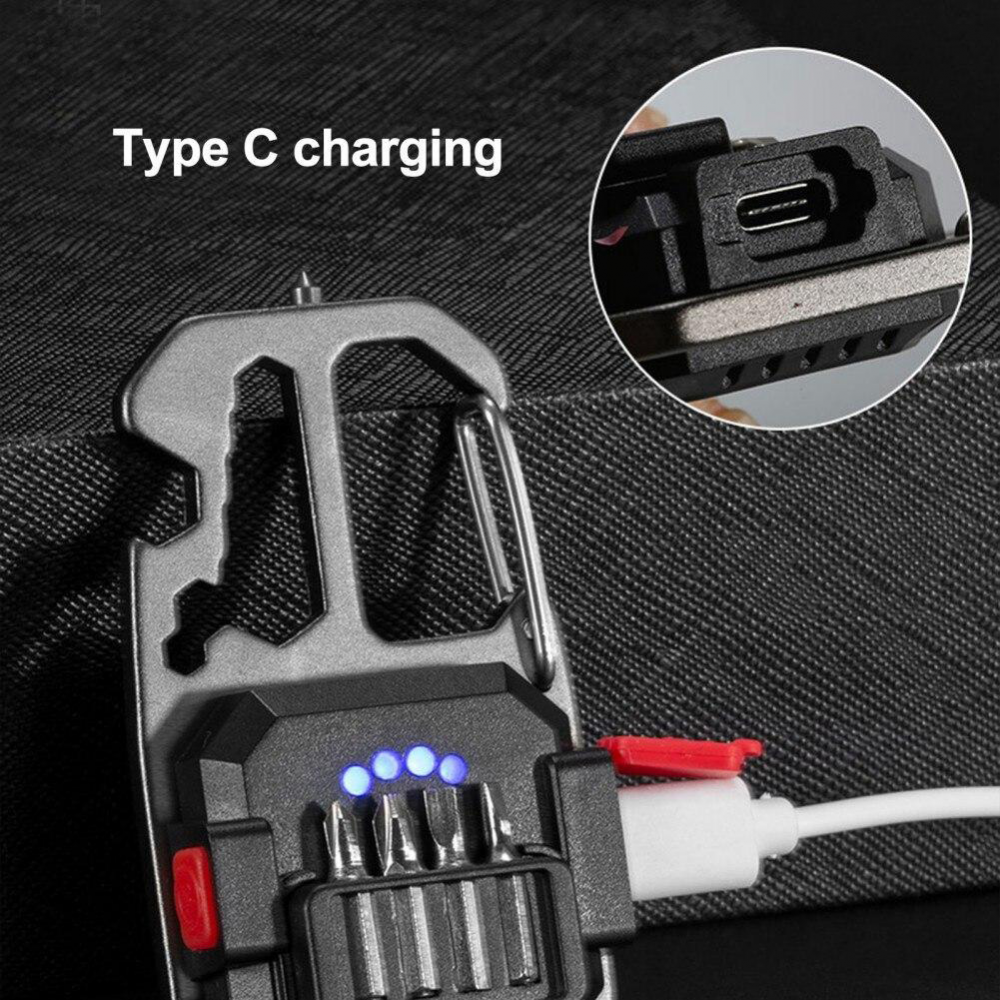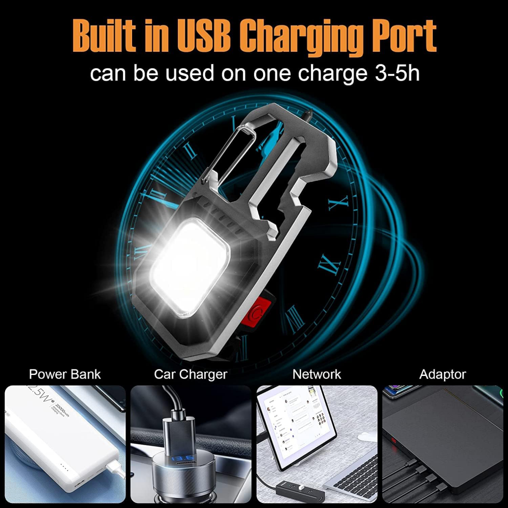 LED lampa privezak, otvarac za flase, univerzalni kljuc sa razbijacem stakla i srafcigerima, crna