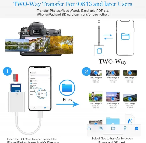 OTG adapter Lighting citac kartica TF/SD beli