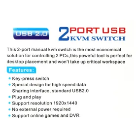 KVM switch 2 PC-a na isti monitor,mis,tastaturu JWD-SP27
