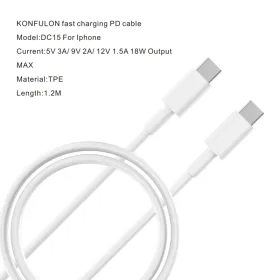 USB Data kabl KONFULON DC15 PD 18W Type C na Type C beli 1m.