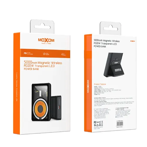 Power Bank prenosiva baterija MagSafe Moxom LX-PB804 LED SCP22.5+ PD20W 5000mAh crni (MS)