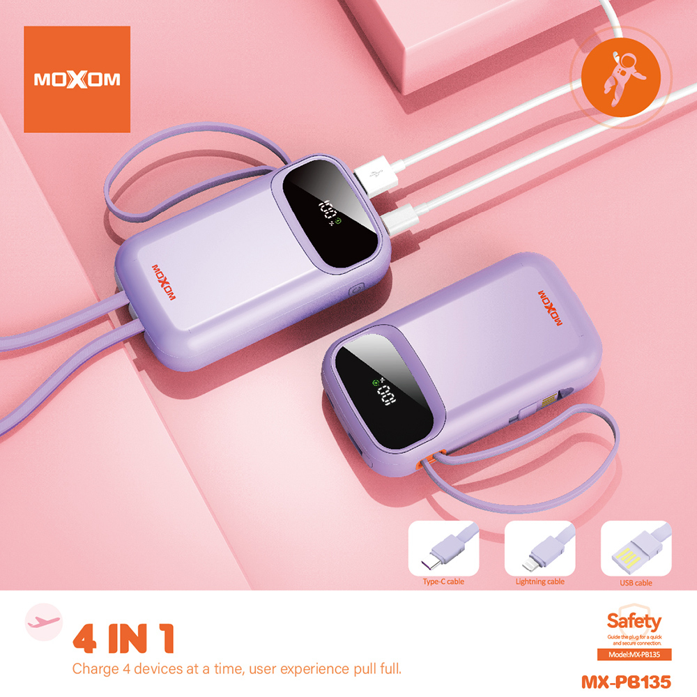 Power Bank prenosiva baterija Moxom MX-PB135 fast 20000mAh QC22.5W+ PD20W 2.4A ljubicasti (MS)