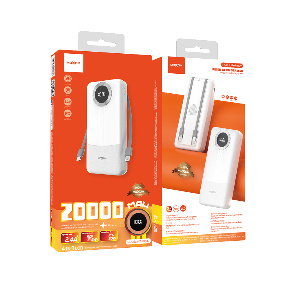 - USB-A/Type-C kabl: DC 5V-4.5A / 5V-3A / 9V-2A / 12V-1.5A (SCP22.5W)