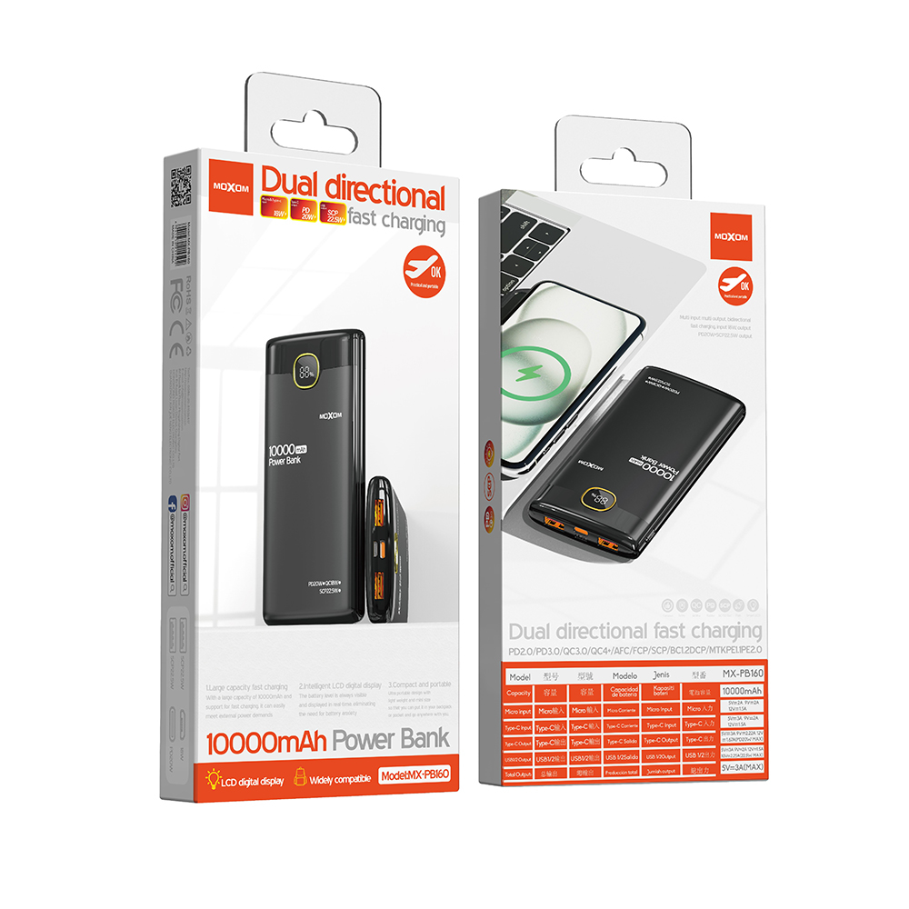 Power Bank prenosiva baterija Moxom MX-PB160 10000mAh SCP22.5W + PD20W 2.4A crni (MS)