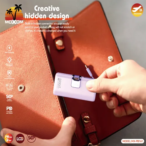 Power Bank prenosiva baterija Moxom MX-PB161 fast PD20W+ PD22.5W 5000mAh ljubicasta (MS)