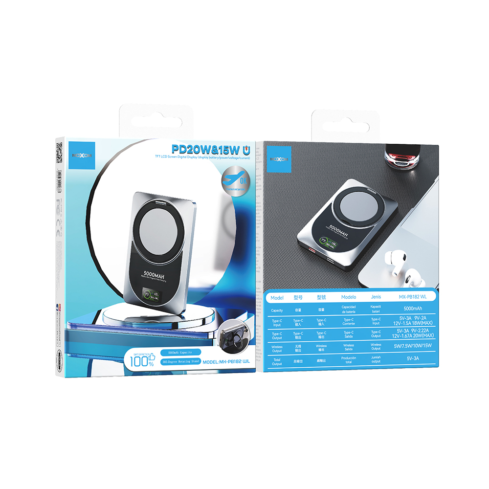 Power Bank prenosiva baterija Moxom MX-PB182 360 Rotate Magsafe PD20W+15W magnetic fast 5000mAh crni (MS)