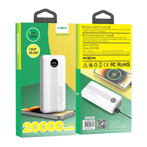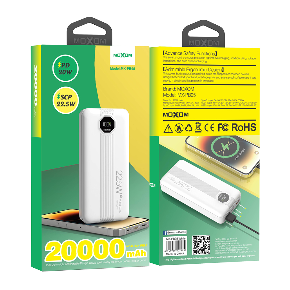 Power Bank prenosiva baterija Moxom MX-PB95 20000mAh SCP22.5W+PD20W beli (MS)