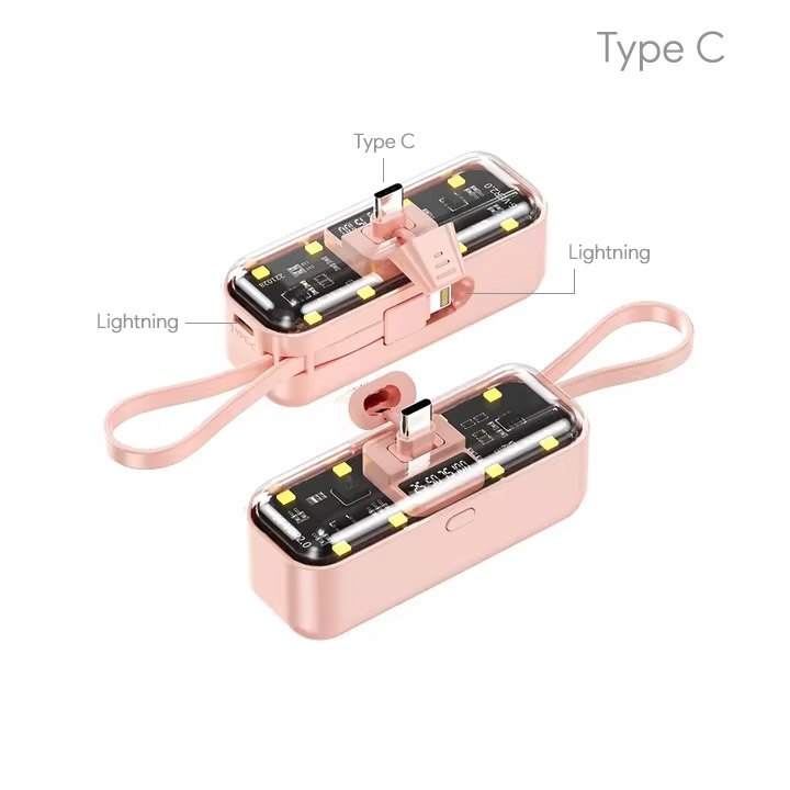 Power bank prenosiva baterija privezak Oxpower 5000mAh Type C roze
