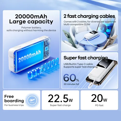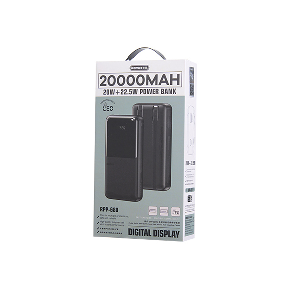 Power Bank prenosiva baterija Remax Cynlle 20W PD+22.5W QC 20000mAh RPP-680 crni (MS)