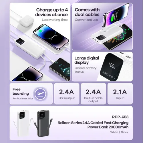 Power bank prenosiva baterija Remax Rellaen series RPP-658 2.4A 20000mAh bela