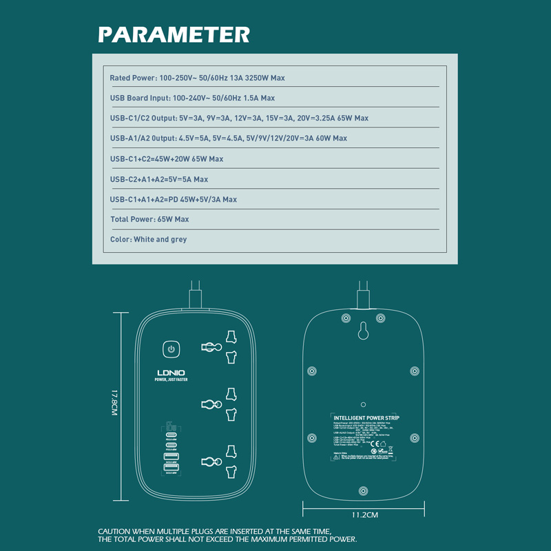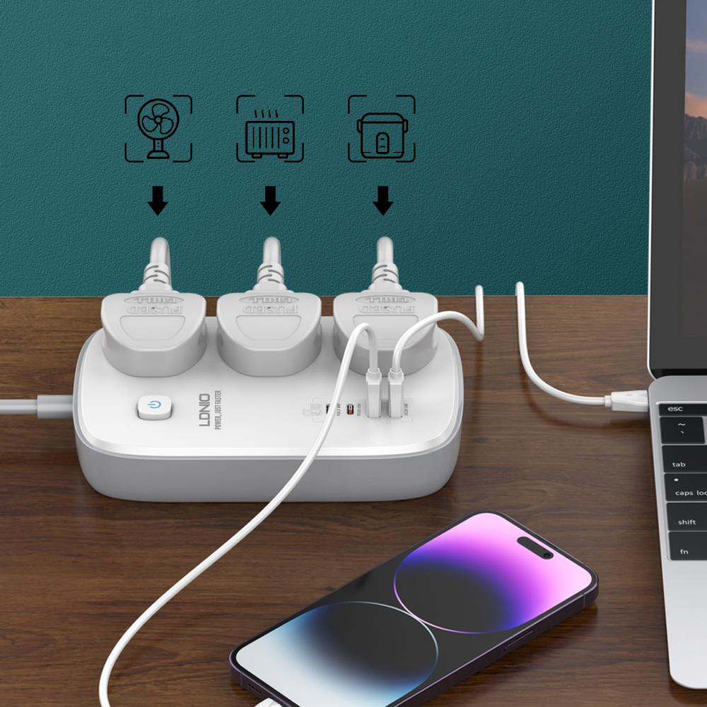 Produzni kabl LDNIO SC3416 EU 3 uticnice + 2xUSB QC 2xPD GaN 2m