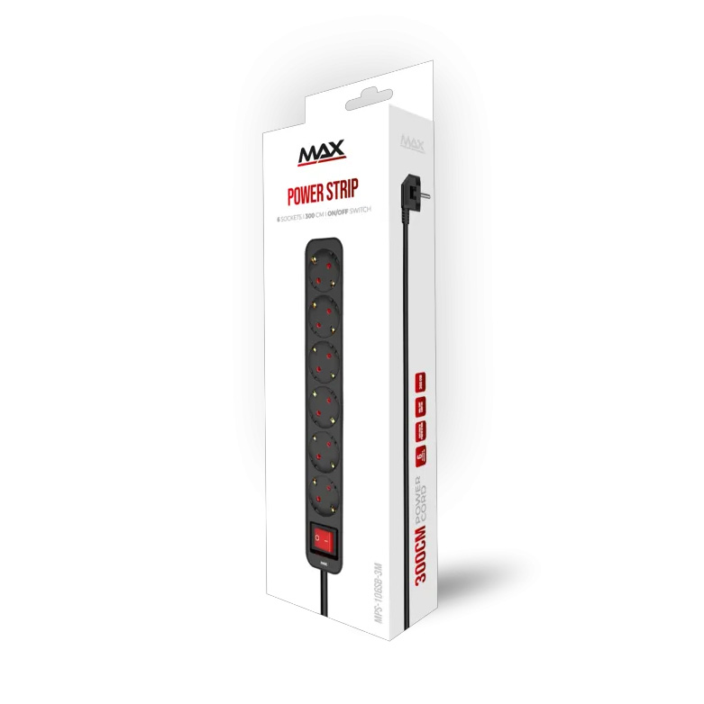 Produzni kabl sa prekidacem 6 uticnice 3m Max MPS-106SB-3M Crni