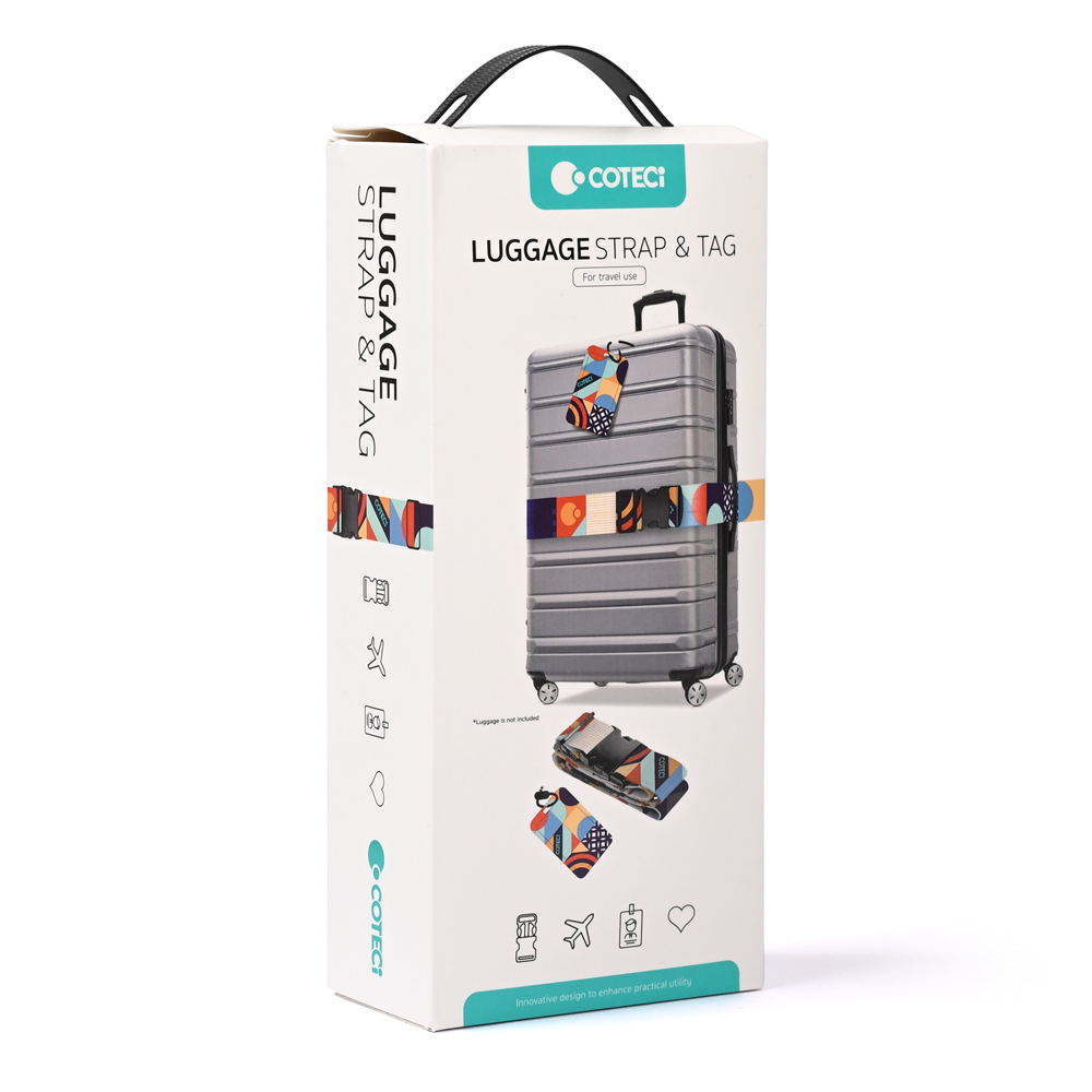 Set Coteci kaiša sa kopčom i oznakom za prtljag je savršen saputnik za svakog ko želi da obezbedi svoj kofer sa stilom.