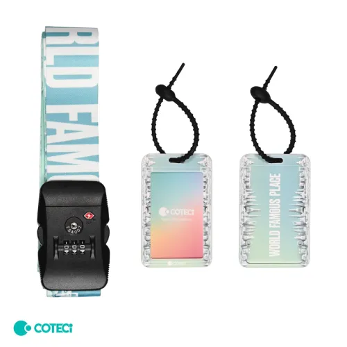 Set Coteci kaiša sa kopčom, oznakom i šifrom za prtljag je savršen saputnik za svakog ko želi da obezbedi svoj kofer sa stilom.