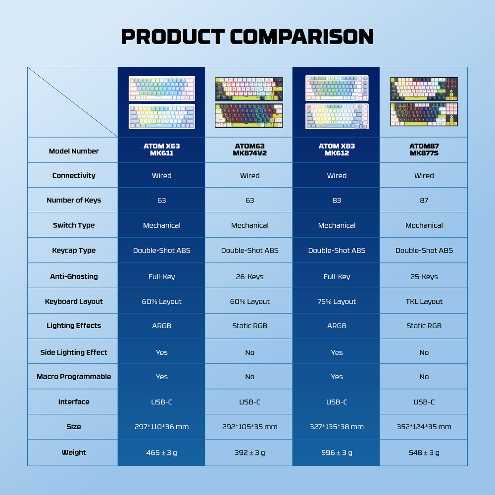 Tastatura Mehanicka Gaming Fantech MK611 Atom x63 AME plava (rosie switch)