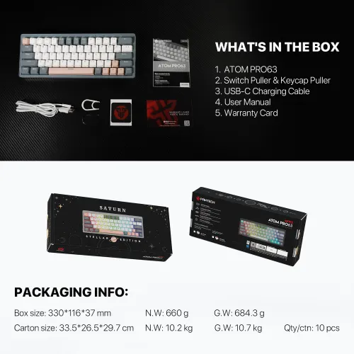 Tastatura Mehanicka Gaming Fantech MK912 RGB Atom PRO63 Wireless Saturn (blue switch)