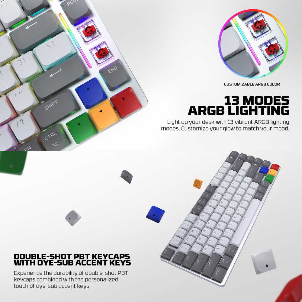 Tastatura Mehanicka Gaming Fantech MK915 RGB Maxfit AIR83 Wireless grey (brown switch)