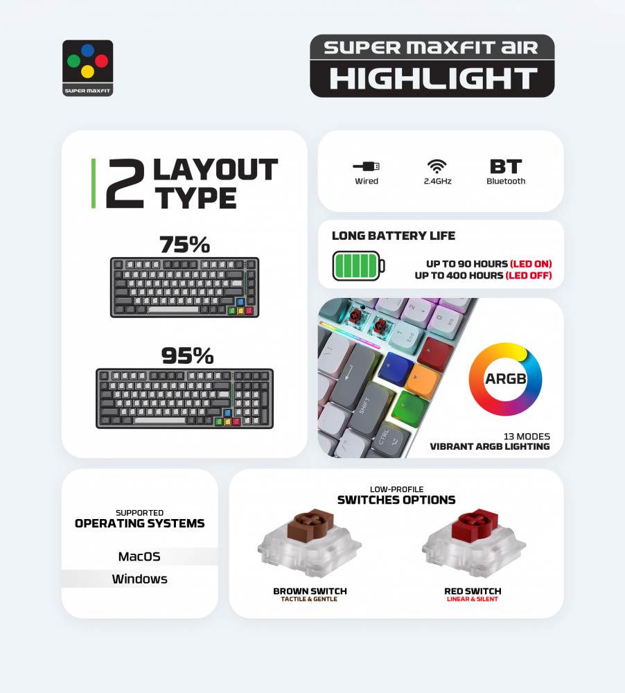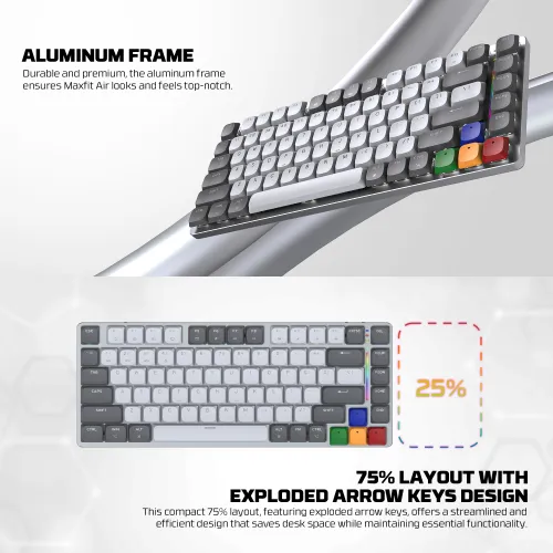 Tastatura Mehanicka Gaming Fantech MK915 RGB Maxfit AIR83 Wireless grey (red switch)