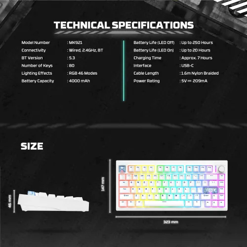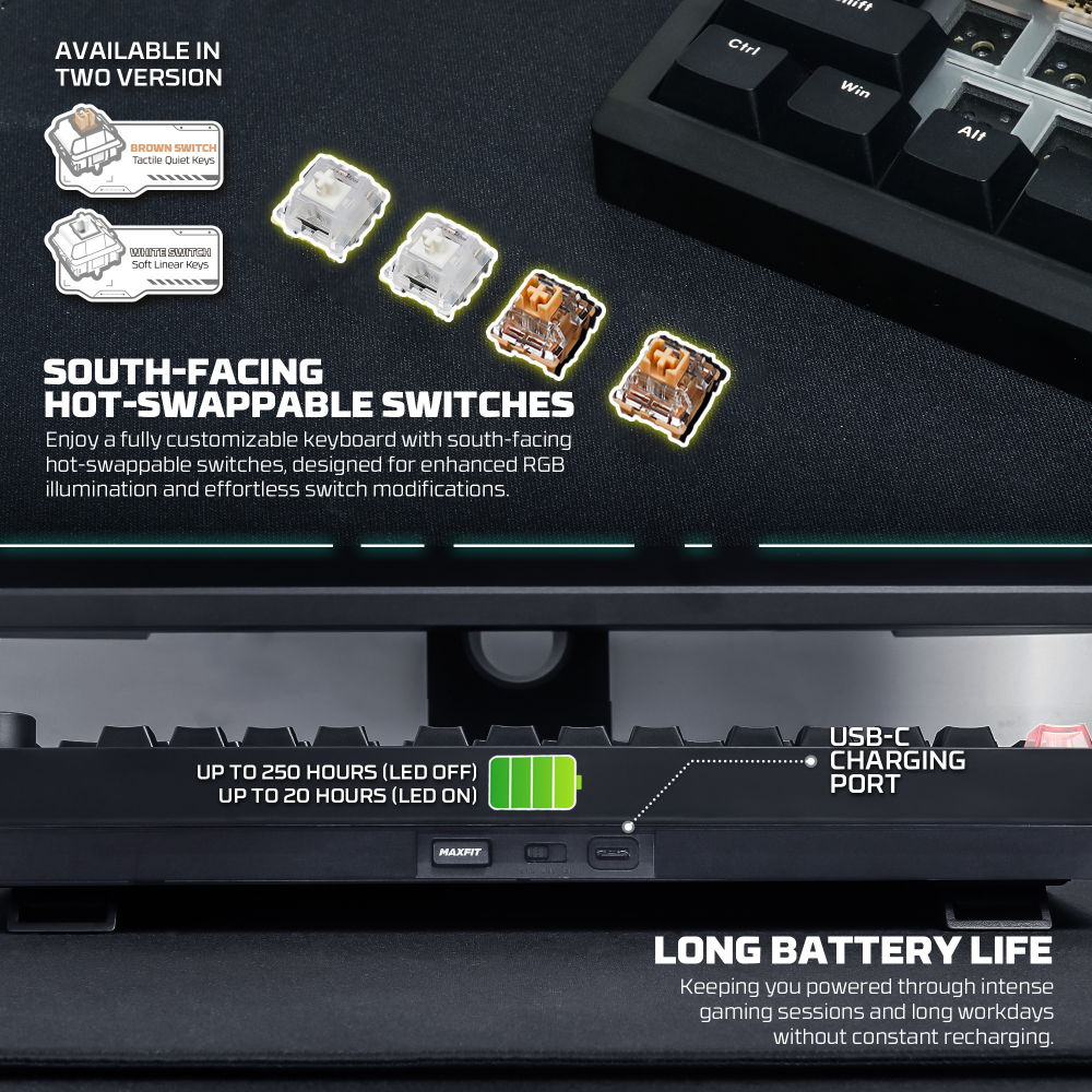 Tastatura Mehanicka Gaming Fantech MK921 Maxfit 8 Wireless black brown switch