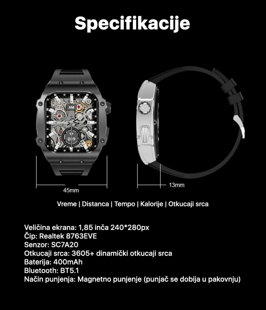 Način punjenja: Magnetno punjenje (punjač se dobija u pakovnju)
