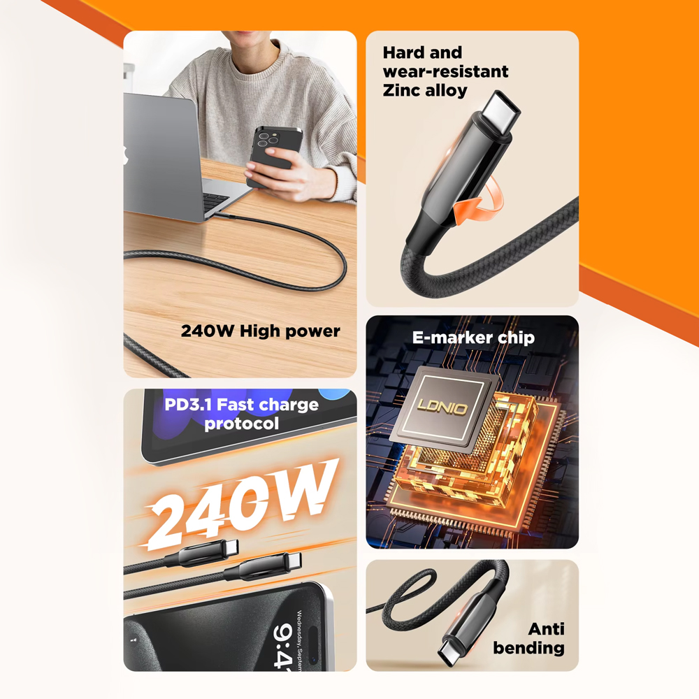 USB Data kabl LDNIO LC922c -240W Type C na Type C crni 1m