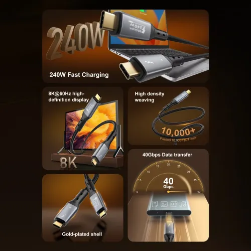 USB Data kabl LDNIO TC11c, USB 4.0, PD3.1, 240W, 40Gbps, 8K 60Hz PD na Type C crni 1m