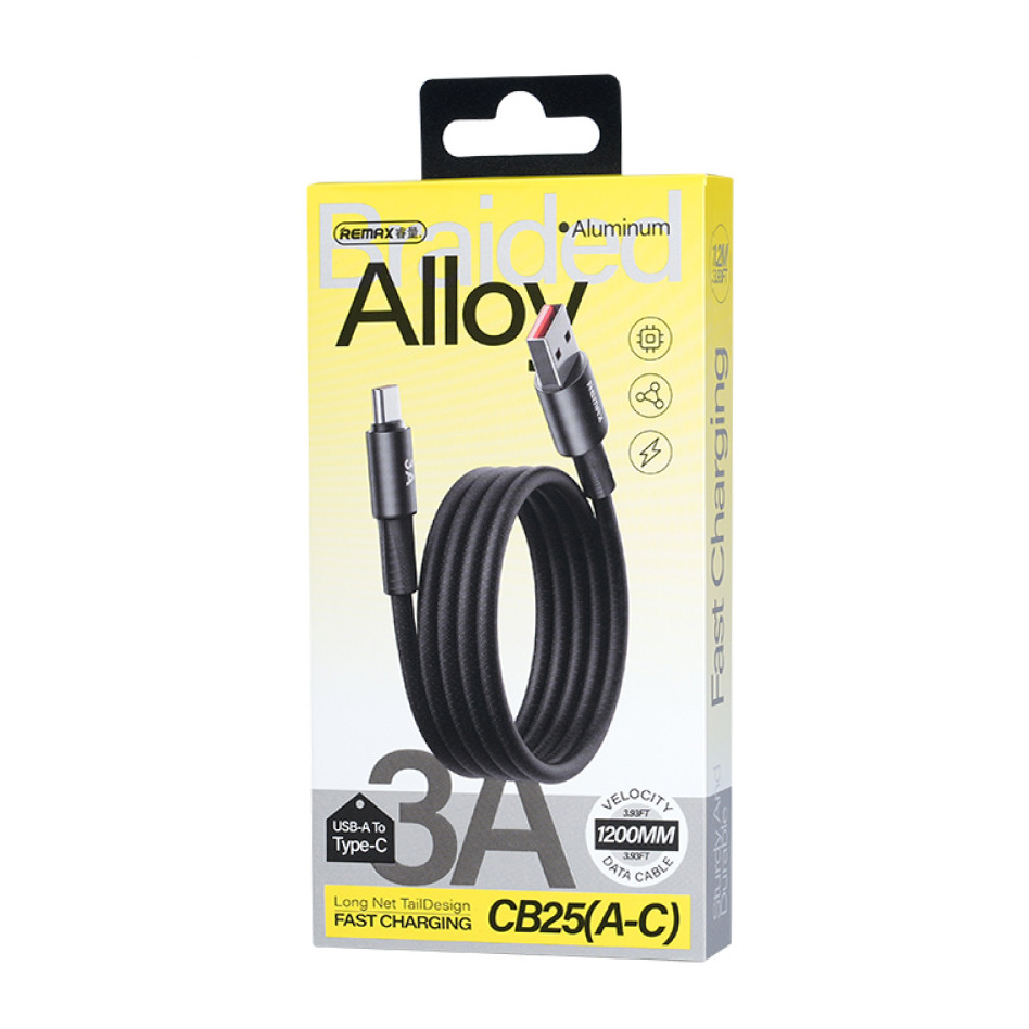 USB Data kabl Remax Velocity CB25 Fast charging 3A USB na Type C 1.2M crni