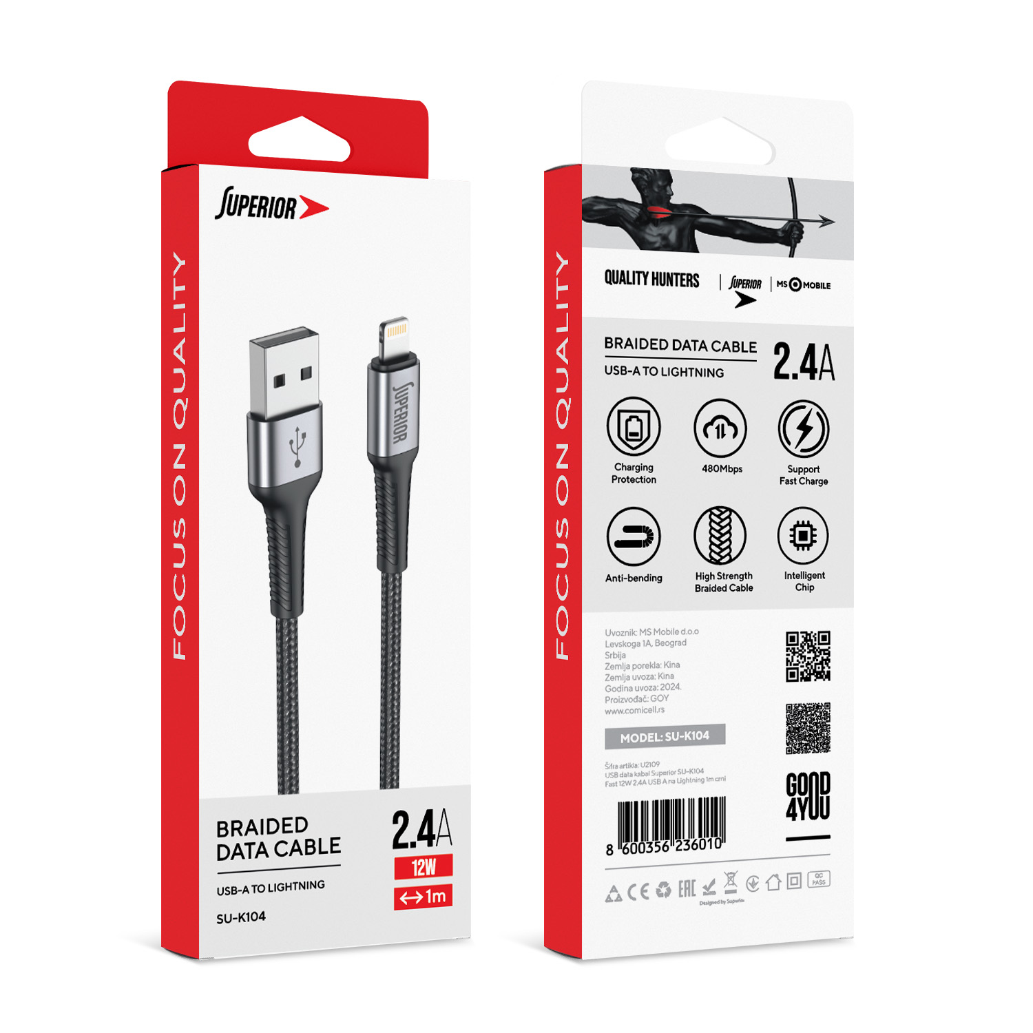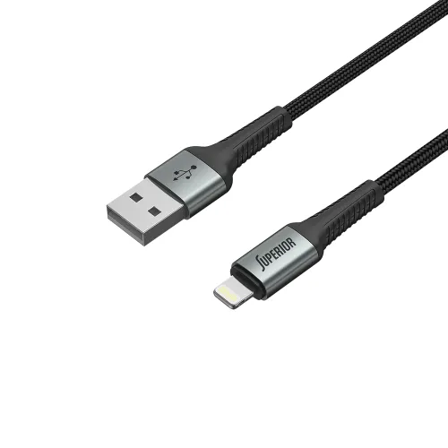 USB data kabl Superior SU-K104 pleteni Fast 12W 2.4A USB A na Lightning 1m crni (MS)