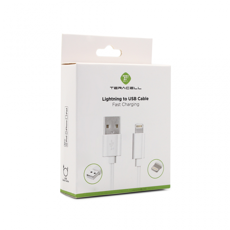 USB Data kabl Teracell Plus 2.4A za iPhone lightning beli 2m